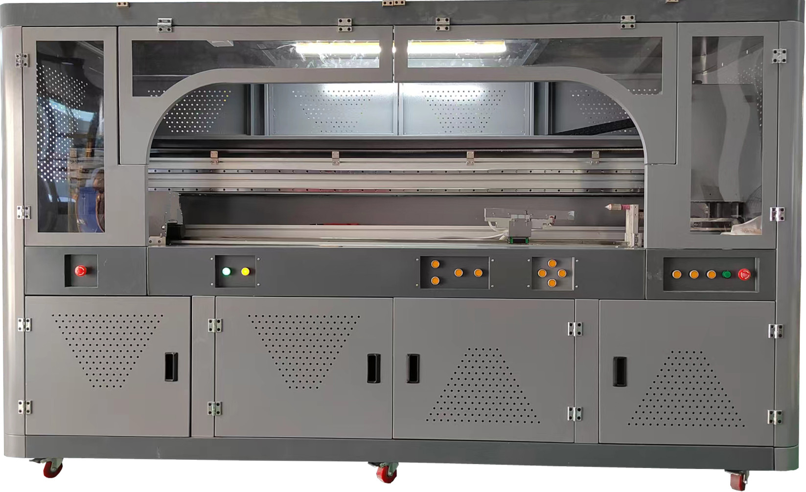 Drukarka cylindrowa może być stosowana do produktów z płaskich surowców: płyty porcelanowej, szkła, akrylu, PVC, ABS, płyty organicznej, metalu, drewna, plastiku, kamienia, skóry, materiałów budowlanych,materiały dekoracyjne, żelu krzemianowego, stereoskopowej farby 3D płytki kratkowej, blachy kratkowej i innych płótn, płótna olejowe, tkaniny z pudełka światła i innych nieograniczonych surowców, drukowanie kolorowe obrazu;Produkty, które mogą być stosowane do materiałów krzywychOpis: pojemniki termiczne, okrągłe aparaty stereo, okrągłe butelki wina, okrągłe prezenty rzemieślnicze itp.